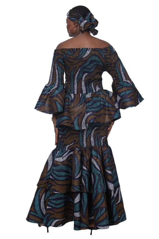 African / Ankara 2 Piece Skirt Sets Elastic Waist One-Size FITS MOST Headwrap