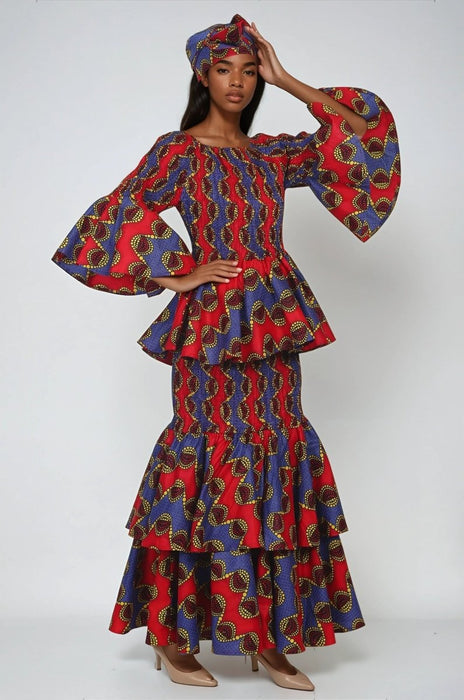 African / Ankara 2 Piece Skirt Sets Elastic Waist One-Size Headwrap