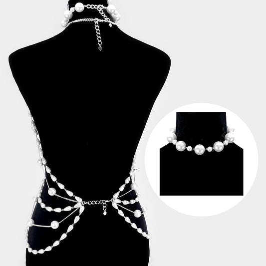 2PCS - Draped Pearl Neck Top Body Chain Necklaces