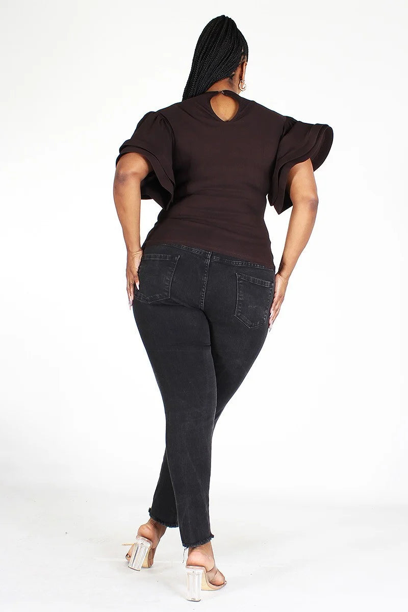 Plus size round neck butterfly top