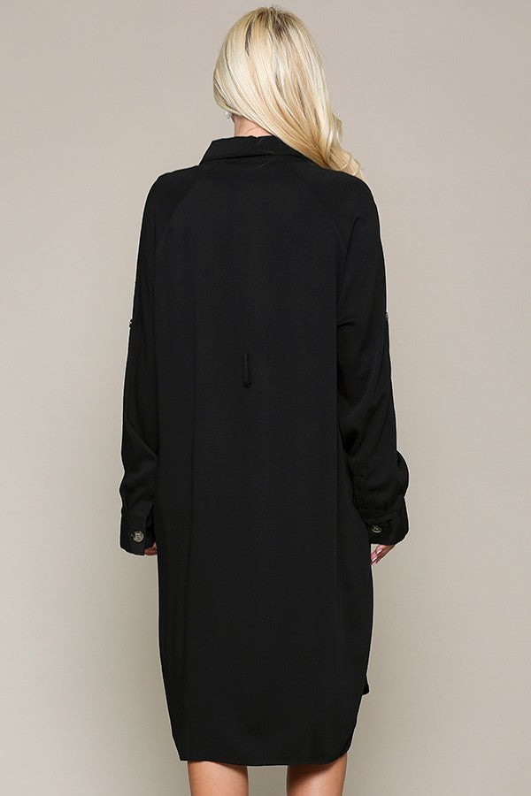 Long Sleeve Button Down D-Ring Belt Dress with Pockets